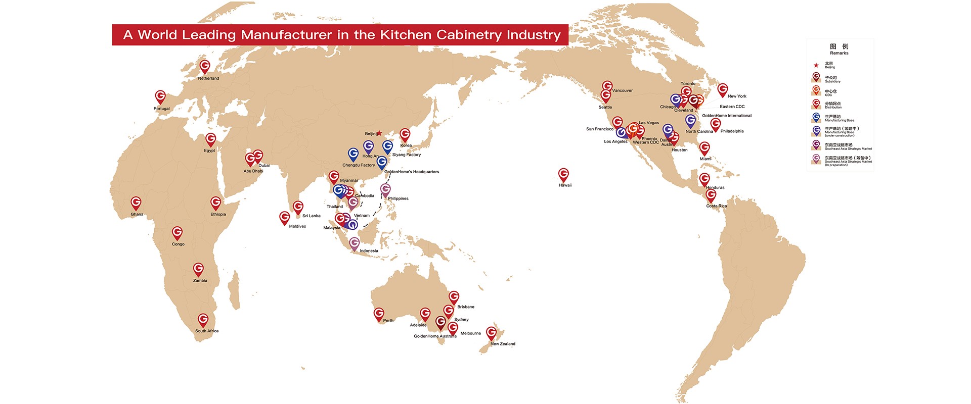 至今,金牌在海内外建有五大专业生产基地及N个卫星工厂,